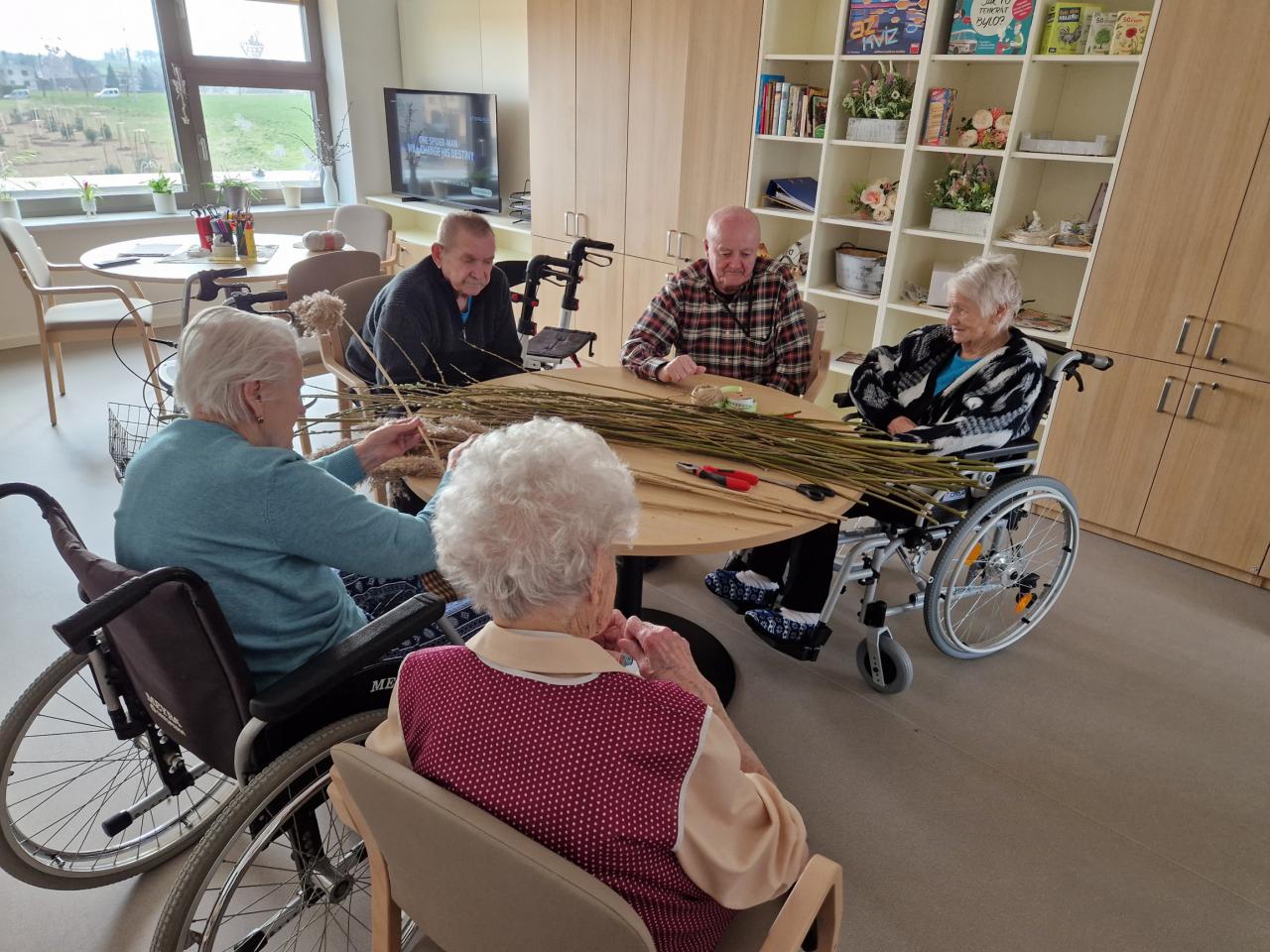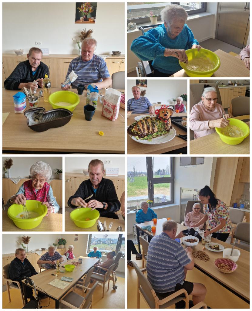 I my se připravujeme na nadcházející velikonoční svátky. Připomínaní tradic je pro naše uživatele velmi důležitou součástí dění v domově. Velikonoční výzdoba, pečení beránka, ale i pletení pomlázky jsou známé zvyky předávané z generace na generaci. Navštívil nás také pan starosta s pomlázkou.